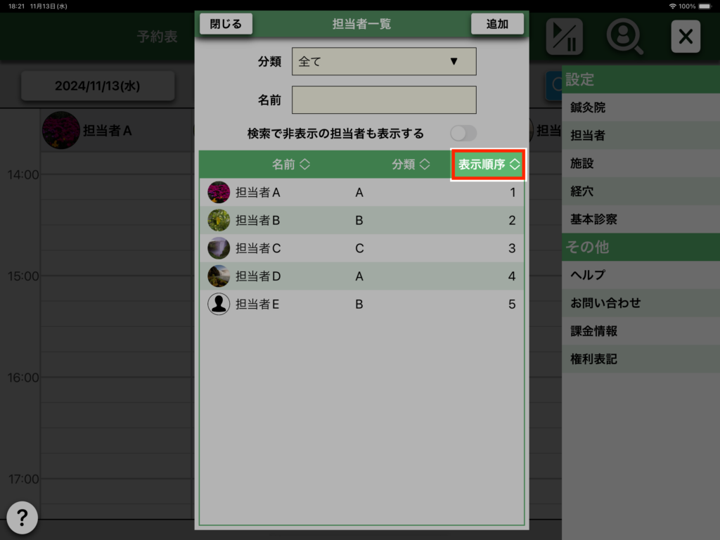 非表示に設定した担当者を表示する場合は、スイッチをオンに切り替えてください